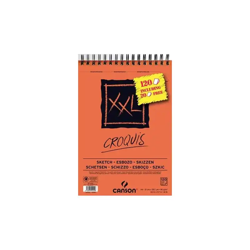 Acheter Direct Bloc XXL Croquis 90g/m² à spirales + feuilles gratuites – A3 – 100 feuilles + 20 gratuites